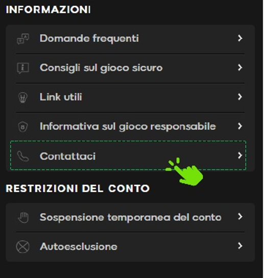 3. Scorrere verso il basso e sotto “INFORMAZIONI” fare clic su “Contatti”.