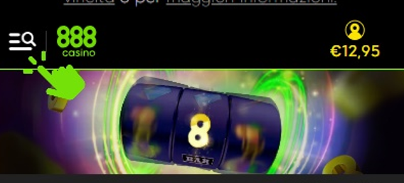 1. Aprire l'applicazione 888 e fare clic sul pulsante del menu in alto a sinistra
