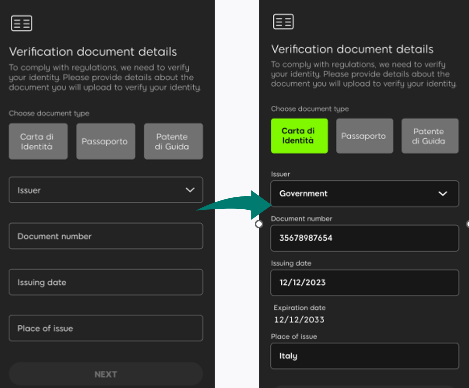 5. Inserite i dati del vostro documento che userete per la verifica