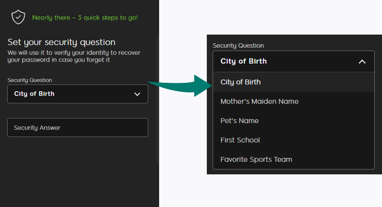 7. Impostare la domanda di sicurezza